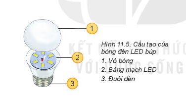 – Cấu tạo bóng đèn LED gồm 3 phần chính: vỏ bóng, bảng mạch LED, đuôi đèn