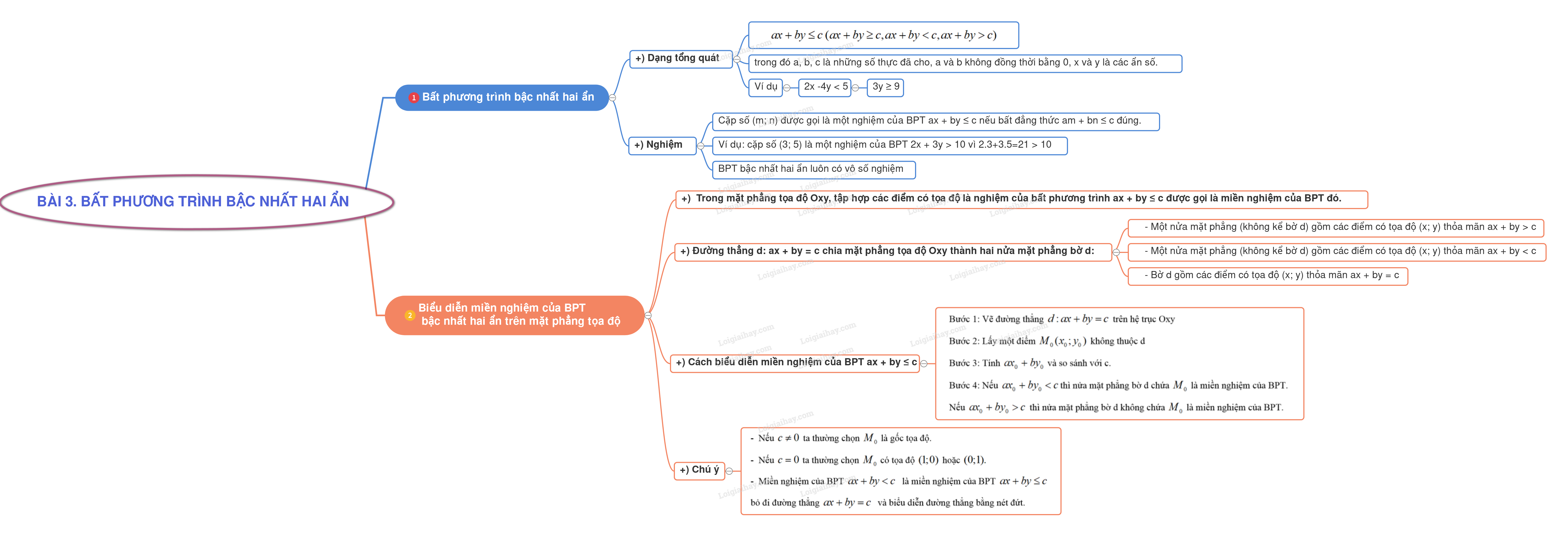–  Bờ d gồm các điểm có tọa độ (x; y) thỏa mãn \(ax + by = c\)