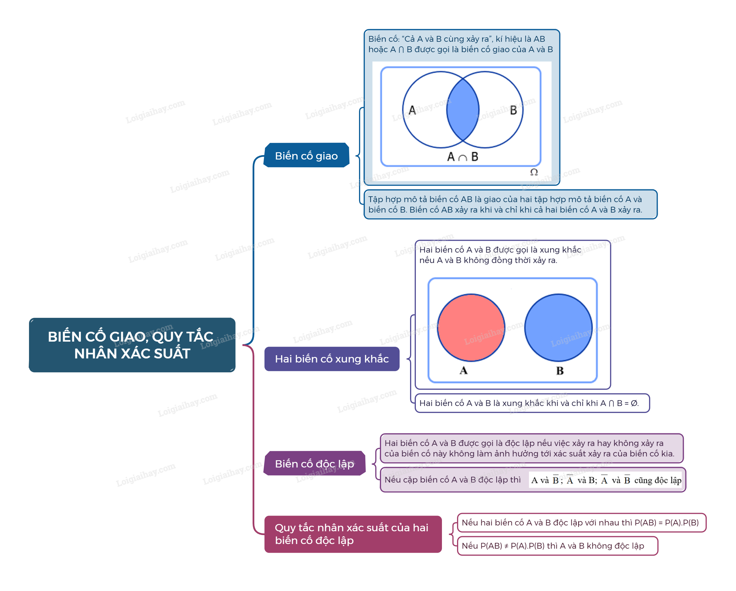 Nếu hai biến cố A và B độc lập với nhau thì \(P\left( {AB} \right) = P\left( A \right).P\left( B \right)\).
