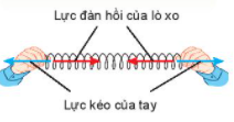 – Khi dùng tay kéo dãn một lò xo, ta thấy lò xo tác dụng lên tay ta một lực. Lực này gọi là lực đàn hồi của lò xo. Lực của tay tác dụng lên lò xo và lực đàn hồi của lò xo tác dụng lên tay là hai lực cùng phương, ngược chiều, cùng độ lớn.
