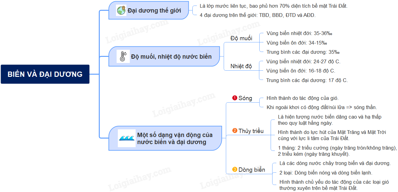 Lý thuyết biển và đại dương Địa lí 6 Kết nối tri thức với cuộc sống ngắn gọn, đầy đủ, dễ hiểu
