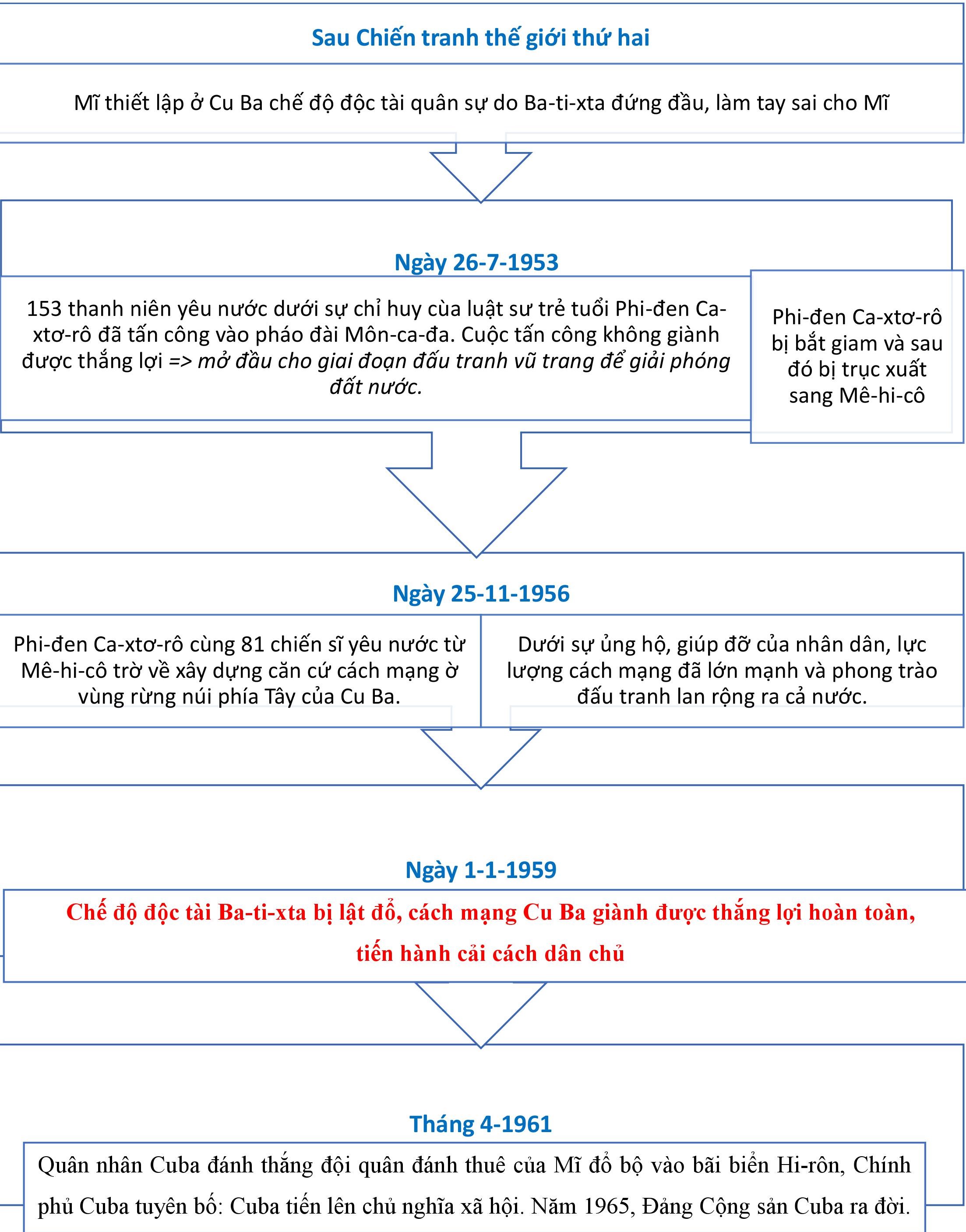 – Sau Chiến tranh thế giới thứ hai, phong trào giải phóng dân tộc ở Mĩ La-tinh phát triển mạnh mẽ (được gọi là “Đại lục núi lửa”, mở đầu bằng cuộc cách mạng Cuba năm 1959.