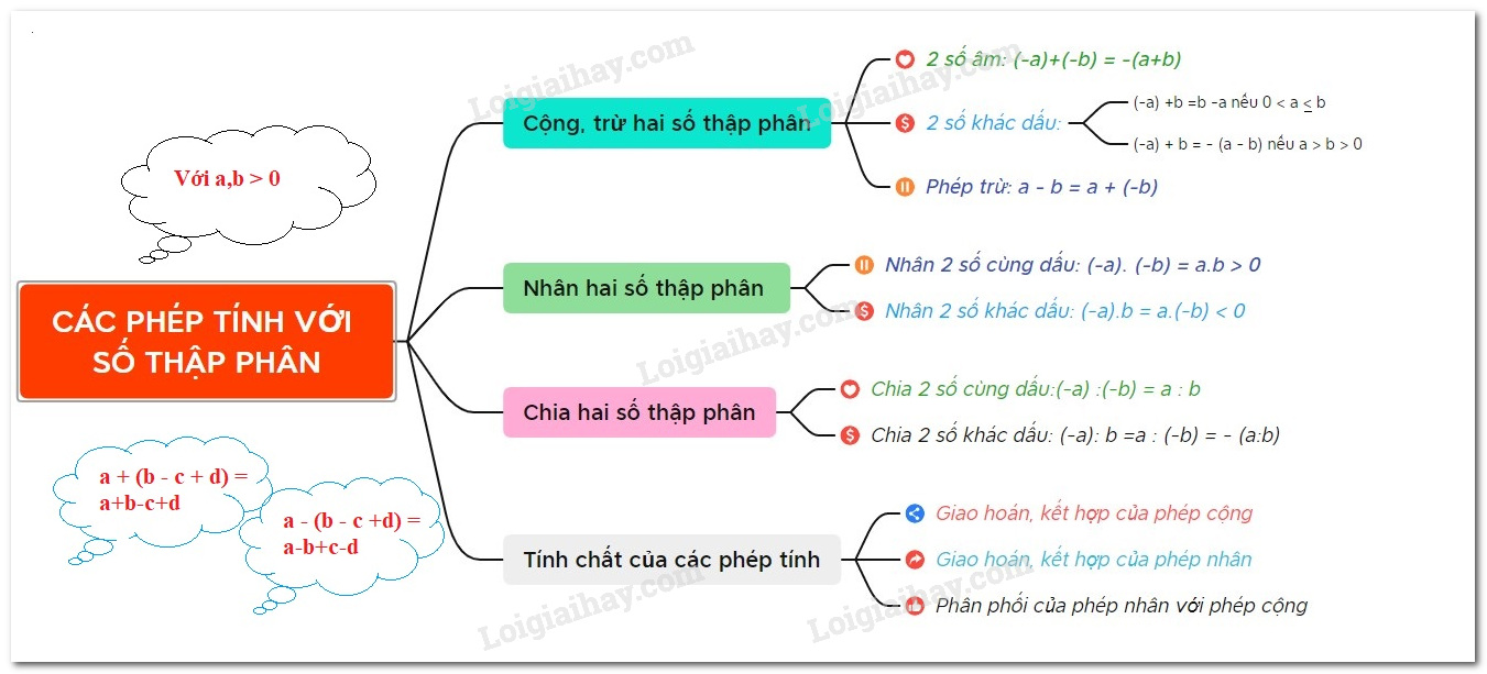 Giống như các phép tính với số nguyên và phân số, các phép tính với số thập phân cũng có đầy đủ các tính chất như: