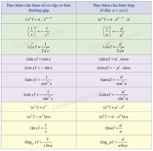 3. Bảng đạo hàm của một số hàm số sơ cấp cơ bản và hàm hợp