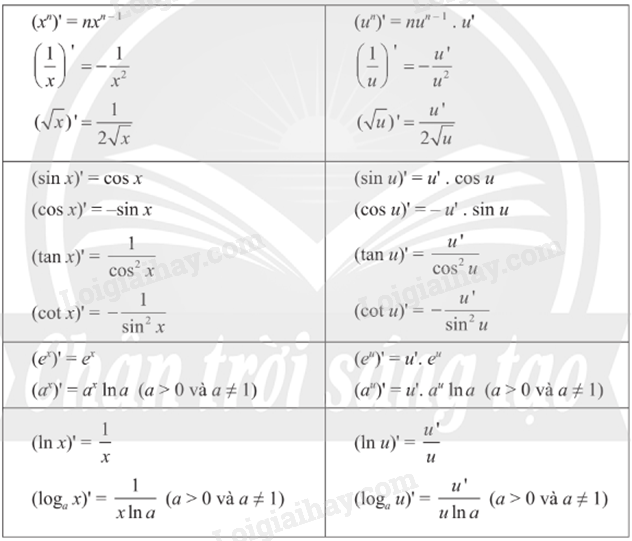 3. Bảng đạo hàm của một số hàm số sơ cấp cơ bản và hàm hợp