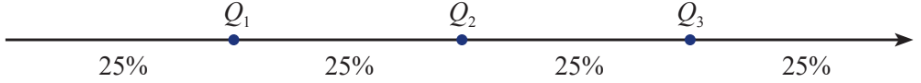 theo thứ tự từ nhỏ đến lớn thành 4 phần, mỗi phần đều chứa 25% giá trị.