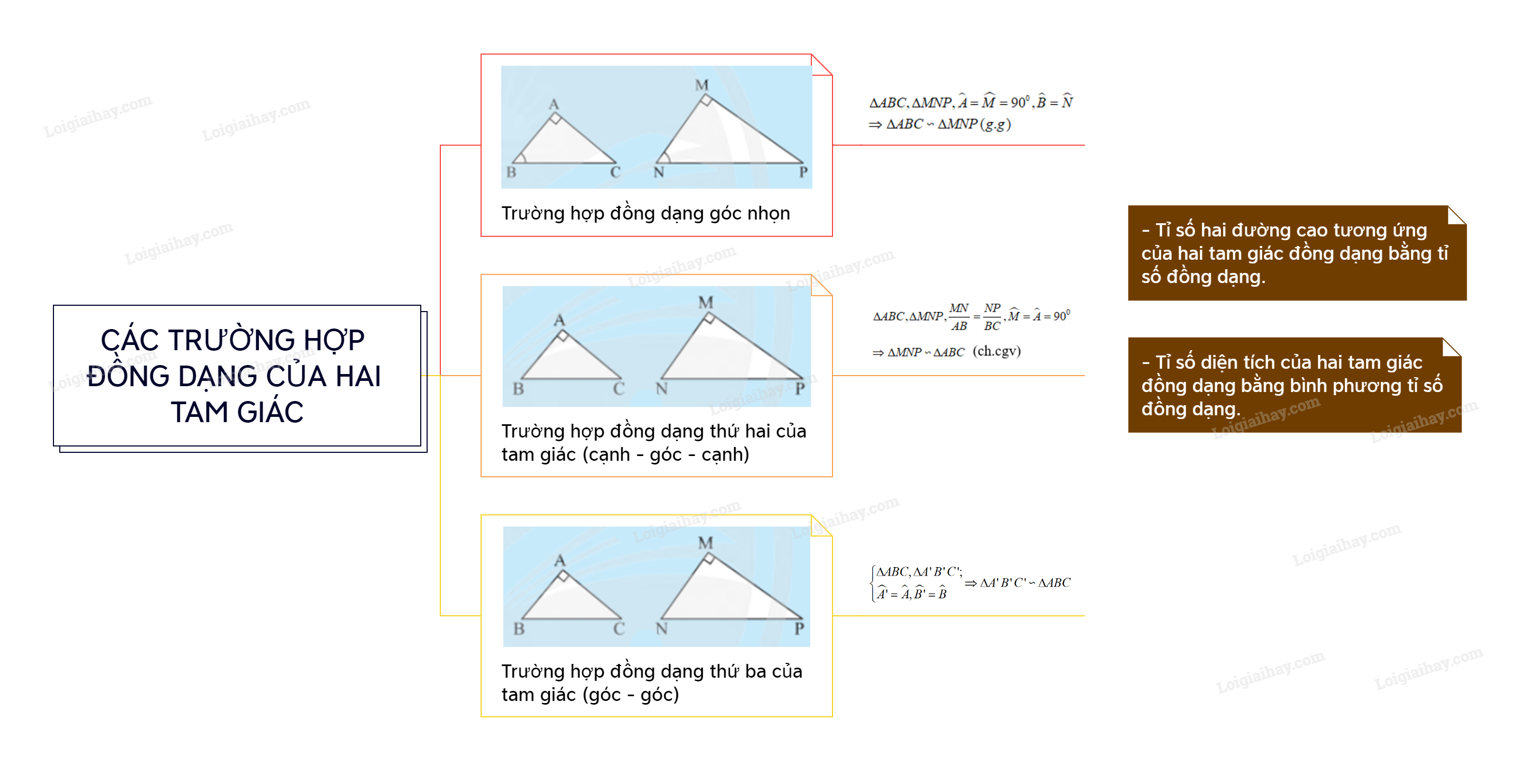 – Tỉ số hai đường cao tương ứng của hai tam giác đồng dạng bằng tỉ số đồng dạng.