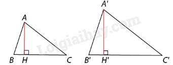Nếu  với tỉ số đồng dạng k thì \(\frac{{A’H’}}{{AH}} = k\) và \(\frac{{{S_{A’B’C’}}}}{{{S_{ABC}}}} = {k^2}\)