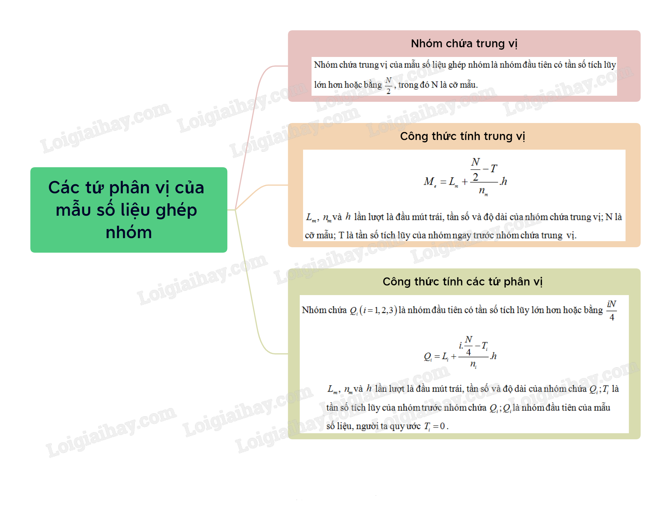 • \({T_i}\) là tần số tích lũy của nhóm trước nhóm chứa \({Q_i}\).