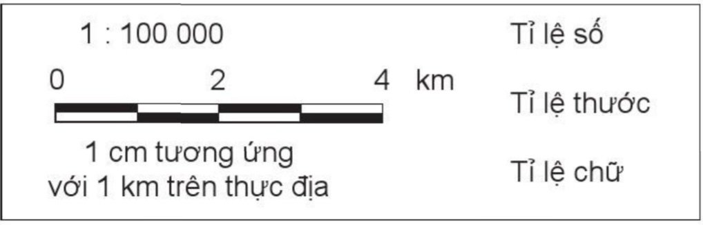 – Tính khoảng cách trên bản đồ dựa vào tỉ lệ bản đồ: