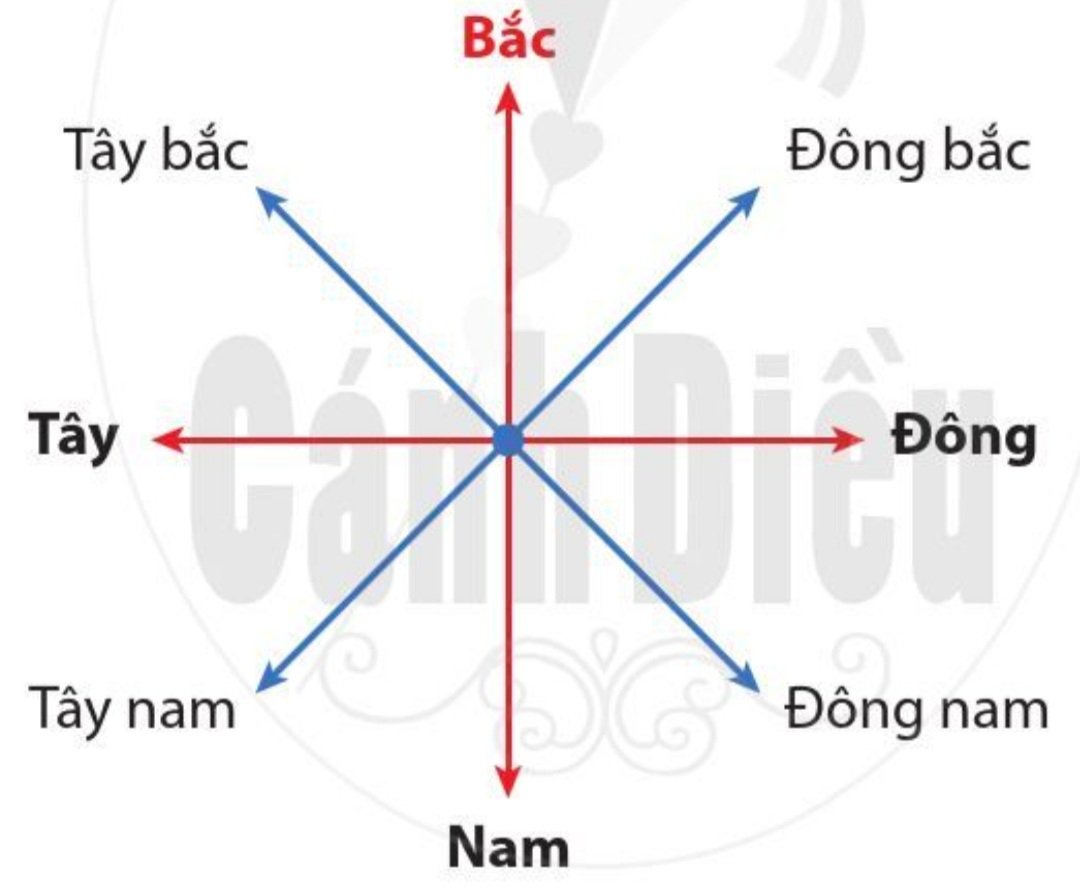 – 2 cách xác định phương hướng trên bản đồ: dựa vào các đường kinh tuyến, vĩ tuyến hoặc mũi tên chỉ hướng bắc trong bản đồ.