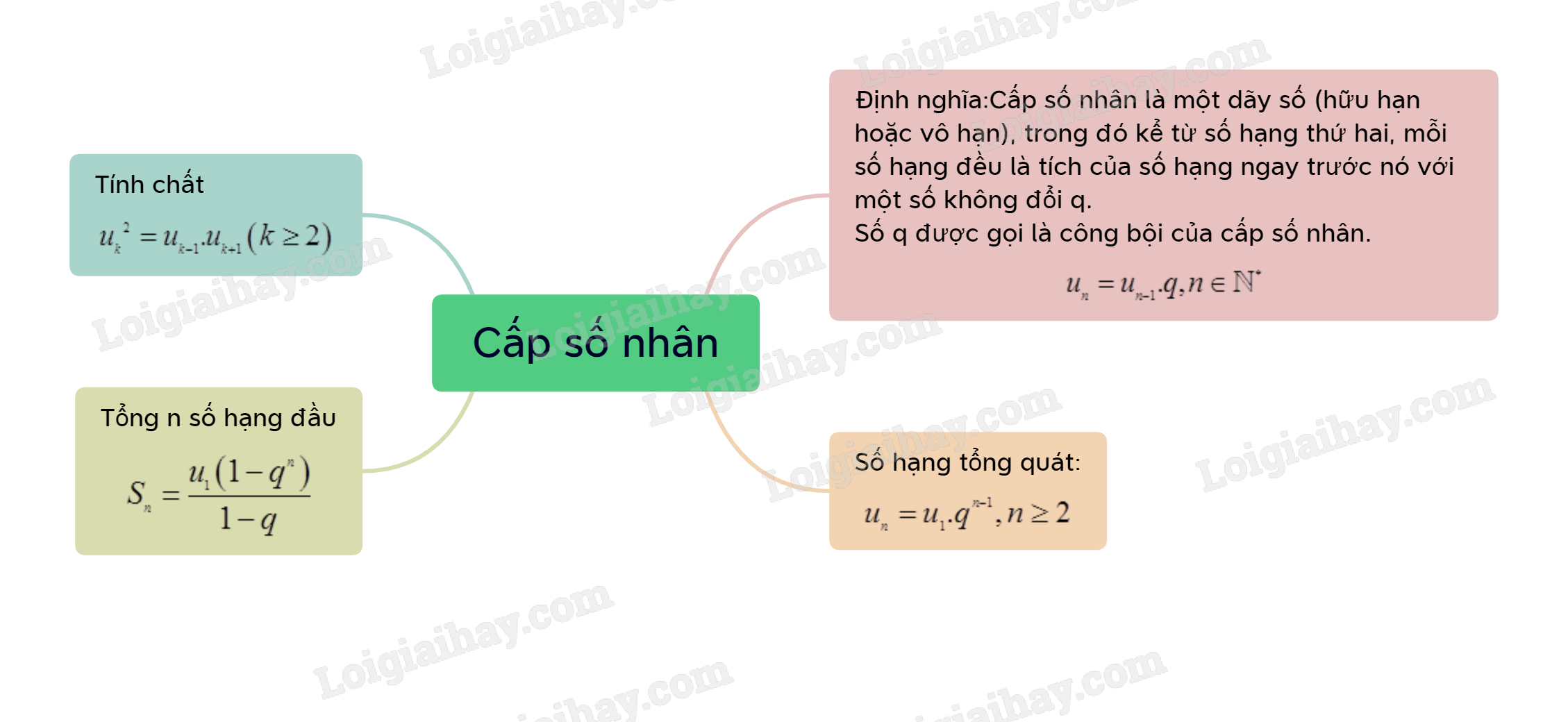 * Chú ý: Dãy \(\left( {{u_n}} \right)\) là cấp số nhân thì \({u_k}^2 = {u_{k – 1}}.{u_{k + 1}}\left( {k \ge 2} \right)\).