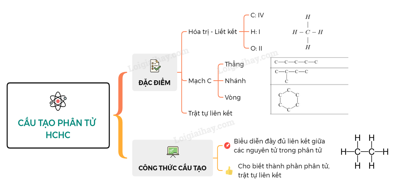 Sơ đồ tư duy: Cấu tạo phân tử hợp chất hữu cơ