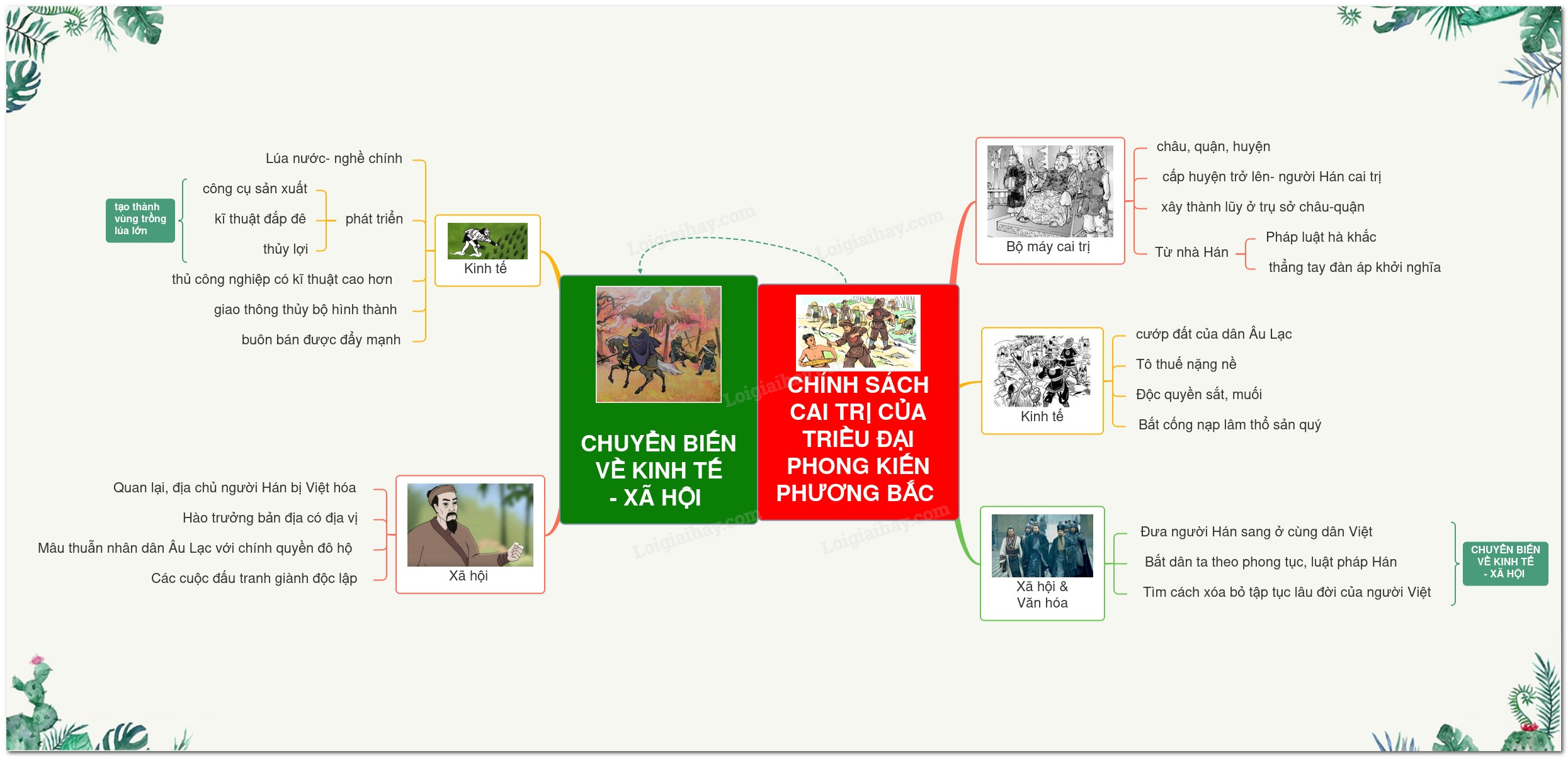 Sơ đồ tư duy chính sách cai trị của triều đại phong kiến phương Bắc và sự chuyển biến trong xã hội Âu Lạc