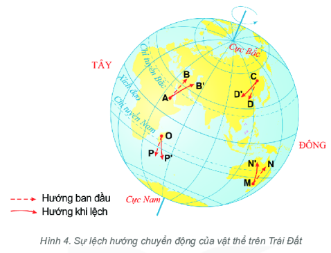 – Do Trái Đất chuyển động tự quay quanh trục nên các vật thể chuyển động trên bề mặt Trái Đất đều bị lệch hướng. Lực làm lệch hướng gọi là lực Cô-ri-ô-lít.