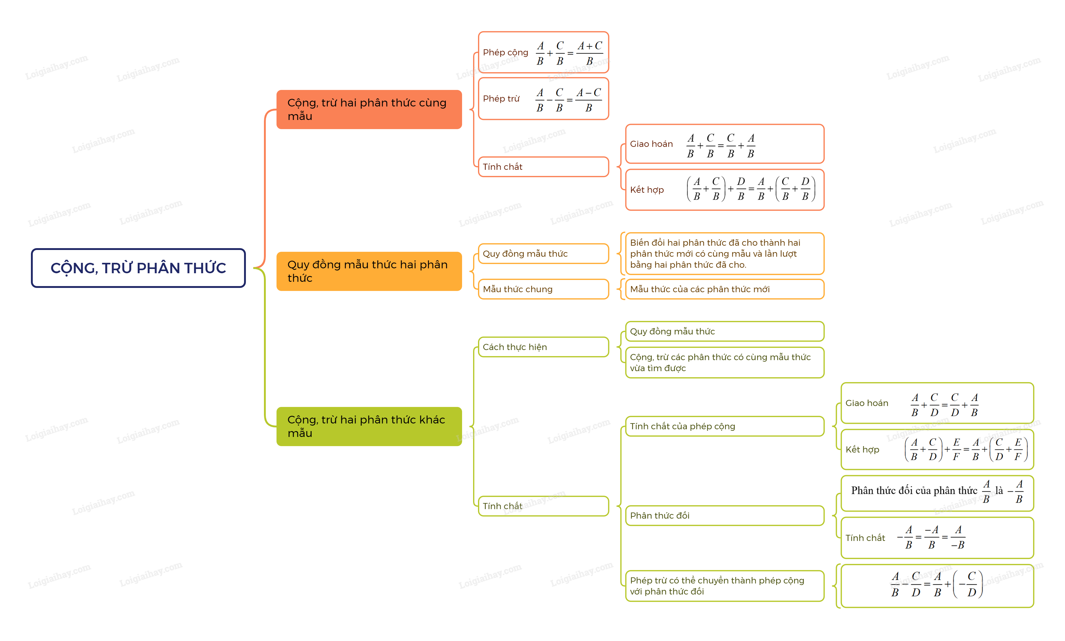 – Cộng, trừ các phân thức có cùng mẫu thức vừa tìm được.