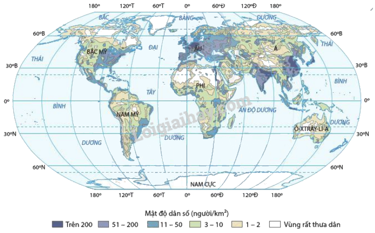 Hình 24.2. Lược đồ phân bố dân cư thế giới năm 2018