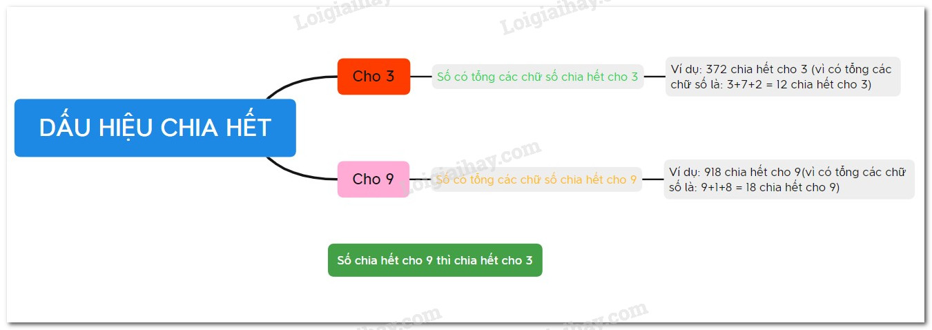Dấu hiệu: Các số có tổng các chữ số chia hết cho 9 thì số đó chia hết cho 9 và chỉ những số đó chia hết cho 9.