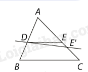 \(\Delta ABC,D \in AB,E \in AC,\frac{{AD}}{{AB}} = \frac{{AE}}{{AC}}\)  hoặc \(\frac{{AD}}{{BD}} = \frac{{AE}}{{CE}}\) hoặc \(\frac{{BD}}{{AB}} = \frac{{CE}}{{AC}}\)