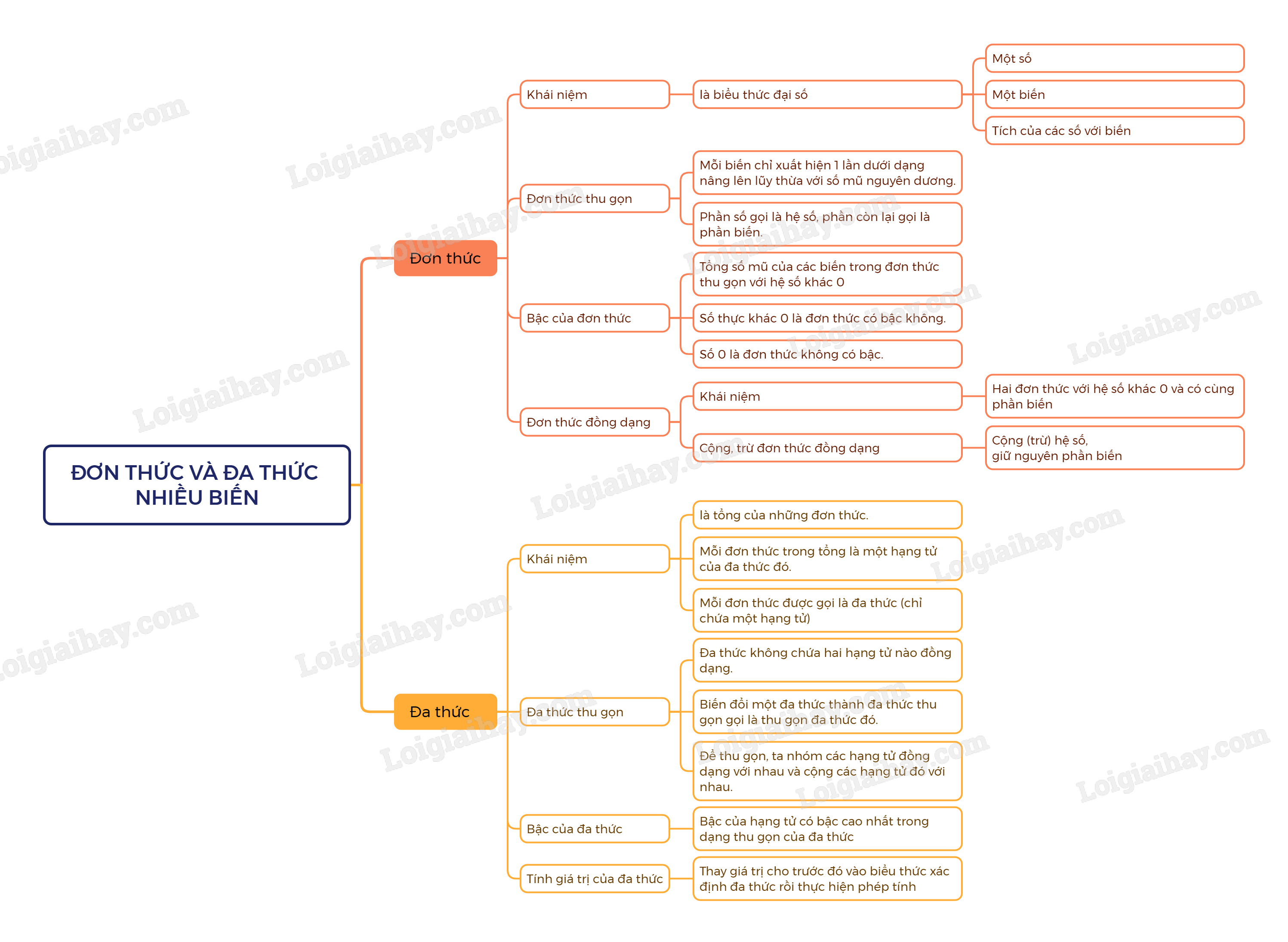 Thu gọn đa thức nhiều biến là làm cho trong đa thức đó không còn hai đơn thức nào đồng dạng.