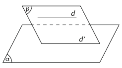 – Nếu hai mặt phẳng phân biệt cùng song song với một đường thẳng thì giao tuyến của chúng (nếu có) cũng song song với đường thẳng đó.
