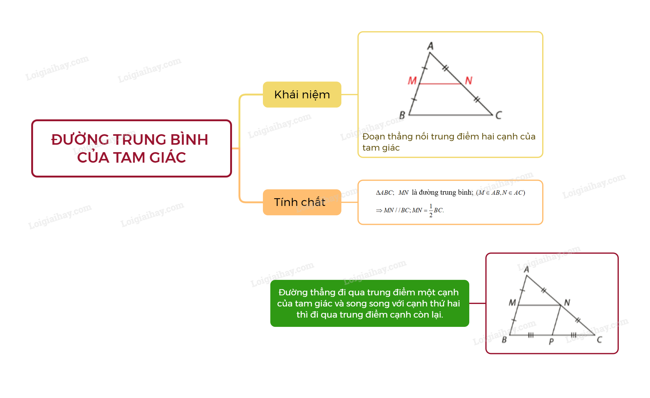 Đường trung bình của tam giác song song với cạnh thứ ba và bằng nửa cạnh đó.