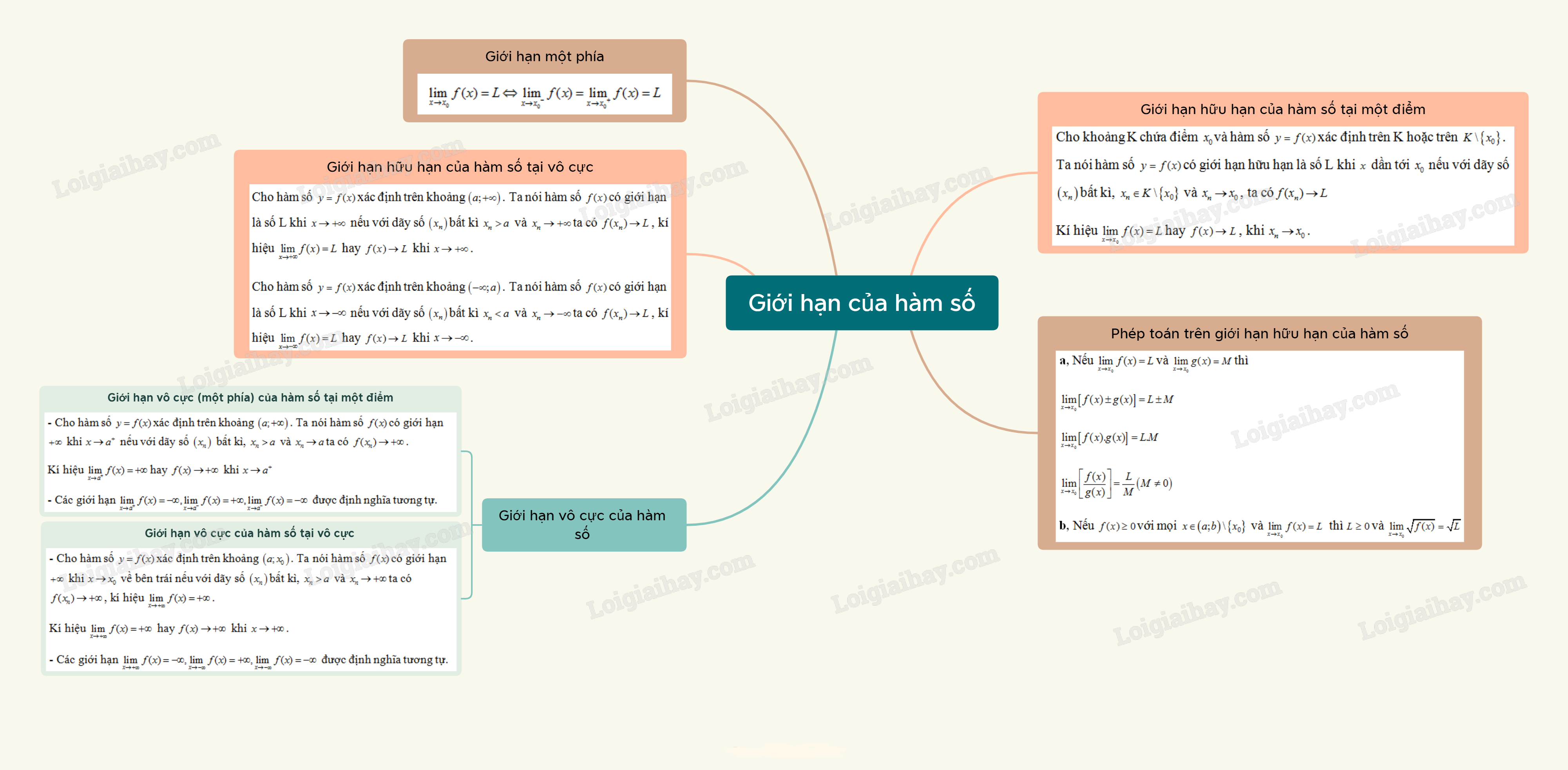 *Nhận xét: \(\mathop {\lim }\limits_{x \to {x_0}} f(x) = L \Leftrightarrow \mathop {\lim }\limits_{x \to {x_0}^ – } f(x) = \mathop {\lim }\limits_{x \to {x_0}^ + } f(x) = L\)