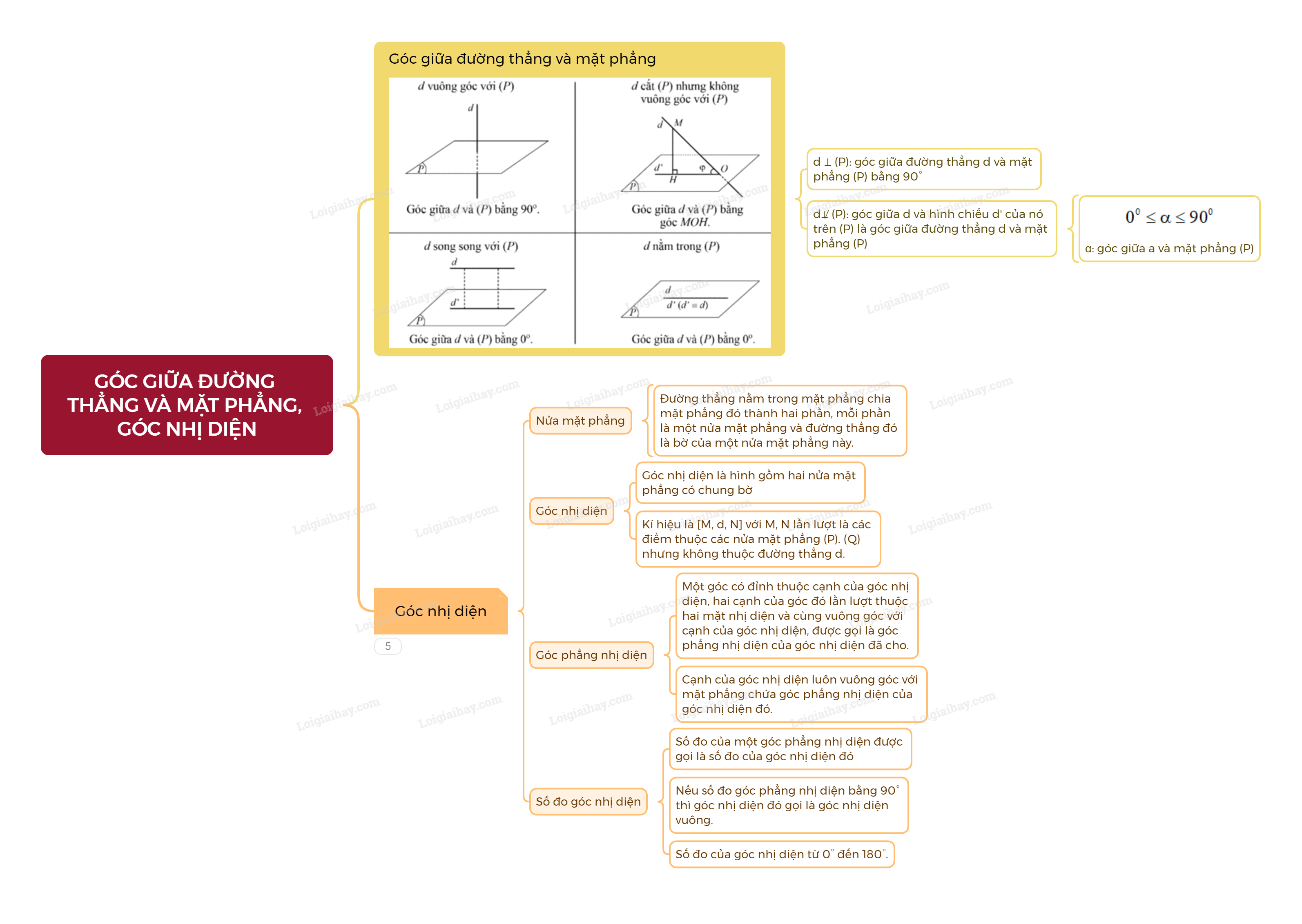 Lý thuyết Góc giữa đường thẳng và mặt phẳng, góc nhị diện – Toán 11 Cánh diều