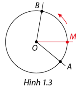 – Tia OM quay xung quanh gốc O từ tia OA đến tia OB tạo ra một góc lượng giác có tia đầu là OA và tia cuối là OB. Góc lượng giác đó được kí hiệu là (OA,OB).