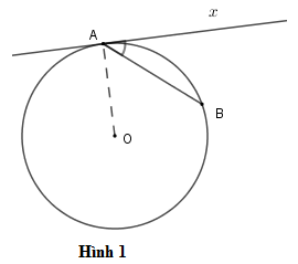 Ví dụ : Góc \(BAx\) (hình $1$) là góc tạo bởi tia tiếp tuyến \(Ax\) và dây cung \(AB\) .