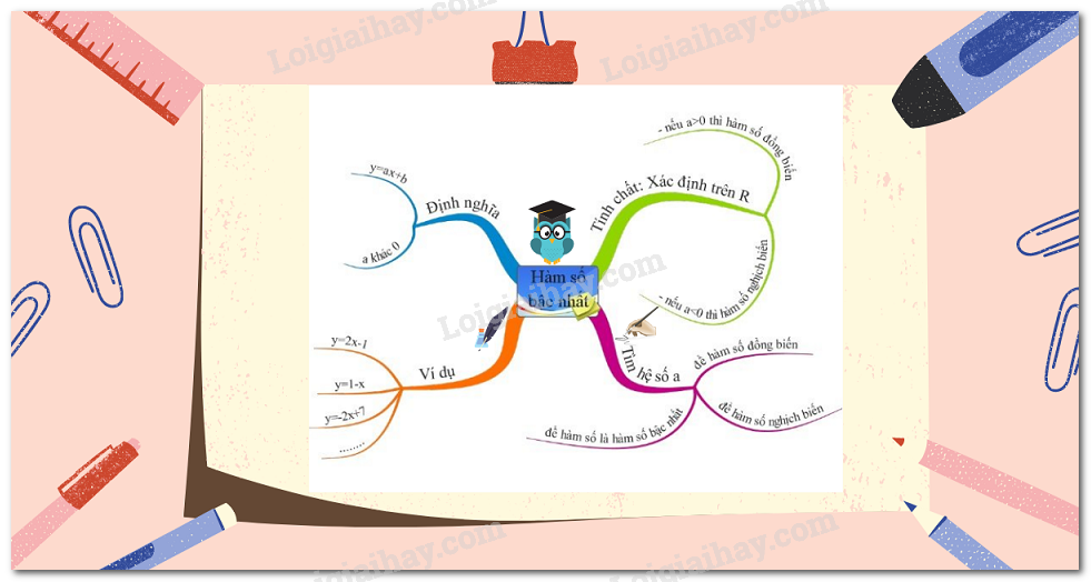 Hàm số bậc nhất $y = ax + b$ xác định với mọi giá trị của $x$ thuộc \(\mathbb{R}\) và có tính chất sau