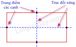 – Hình chữ nhật: Mỗi đường thẳng đi qua trung điểm hai cạnh đối diện là một trục đối xứng của hình chữ nhật.