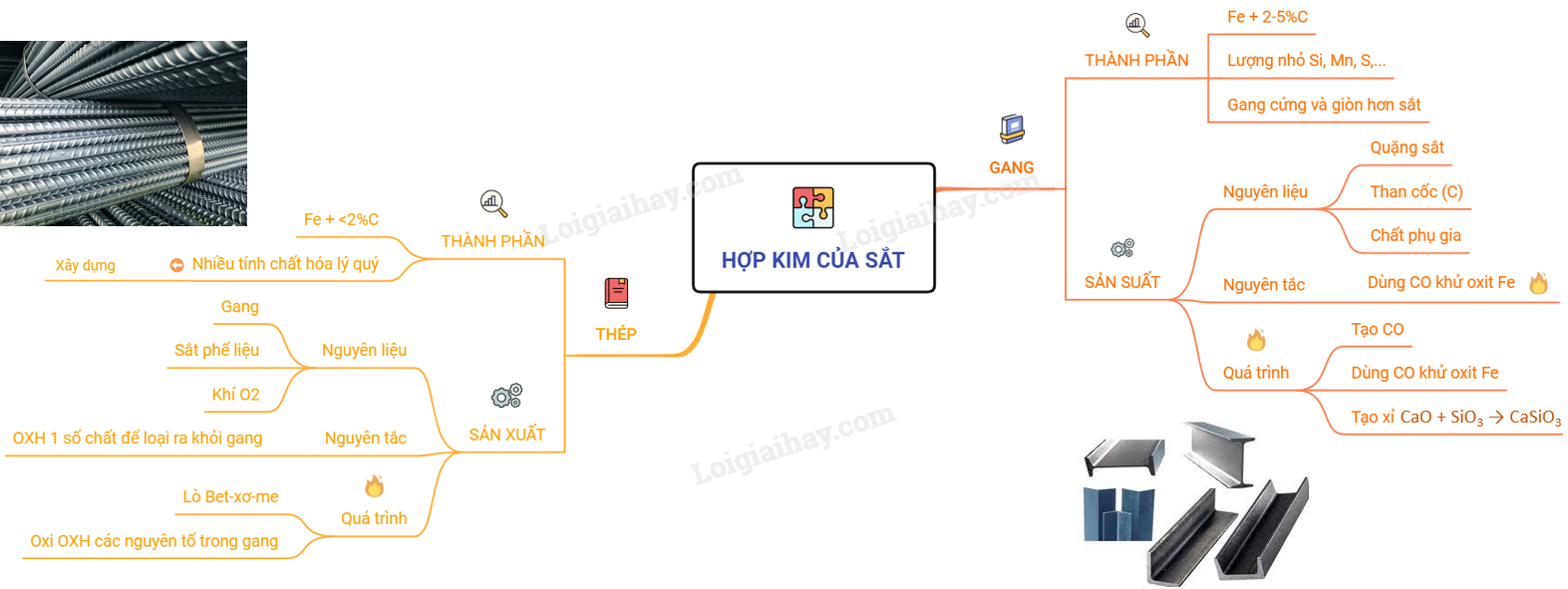 Sơ đồ tư duy – Hợp kim sắt: Gang, thép