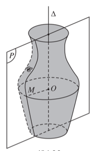 Trong không gian cho mặt phẳng \((P)\)  chứa đường thẳng \(\Delta \) và một đường C . Khi quay mặt phẳng \((P)\) quanh \(\Delta \) một góc \({360^o}\) thì mỗi điểm \(M\) trên đường C  vạch ra một đường tròn có tâm \(O\) thuộc \(\Delta \) và nằm trên mặt phẳng vuông góc với \(\Delta \). Như vậy khi quay mặt phẳng \((P)\) quanh đường thẳng \(\Delta \) thì đường C   sẽ tao nên một hình được goi là mặt tròn xoay.