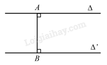 Ví dụ: Trong hình dưới đây, ta có: \(d\left( {\Delta ,{\Delta ^\prime }} \right) = AB\) với \(A \in \Delta \), \(B \in {\Delta ^\prime },AB \bot \Delta ,AB \bot {\Delta ^\prime }\) và \(\Delta //{\Delta ^\prime }\).