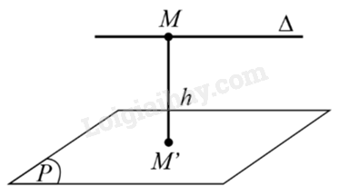 Ví dụ: Trong hình dưới đây, ta có: \(d(\Delta ,(P)) = M{M^\prime } = h\), trong đó \(M \in \Delta ,{M^\prime } \in (P),M{M^\prime } \bot (P)\) và \(\Delta //(P)\).