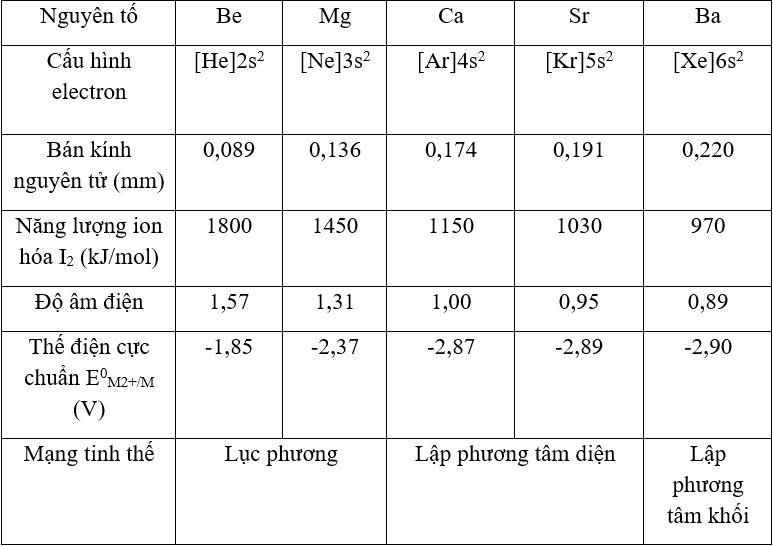 – Kim loại kiềm thổ là những nguyên tố s (ns2) thuộc nhóm IIA, gồm các kim loại: