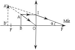 – Giữa số bội giác và tiêu cự \(f\) (đo bằng cm) có hệ thức: \(G = \frac{{25}}{f}\)