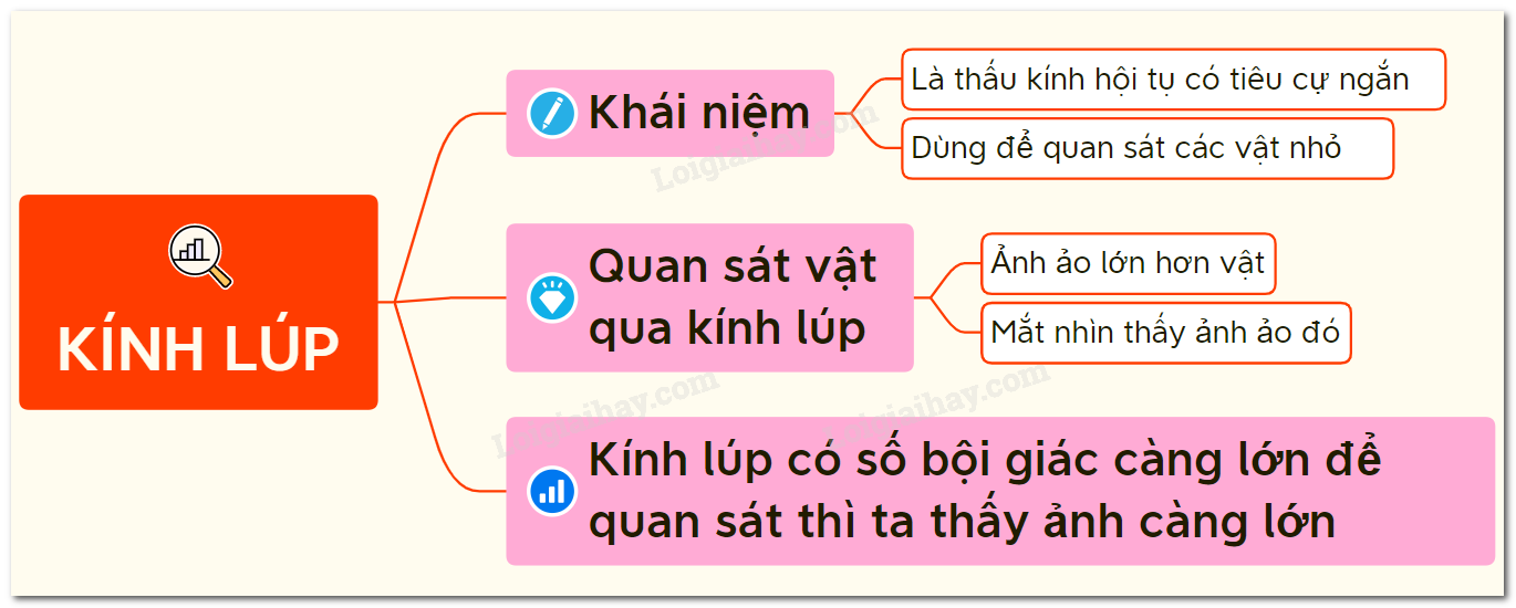 Sơ đồ tư duy về kính lúp – Vật lí 9