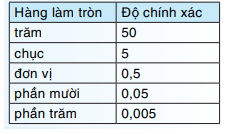 Khi làm tròn đến một hàng nào đó, kết quả làm tròn có độ chính xác bằng một nửa đơn vị hàng làm tròn.