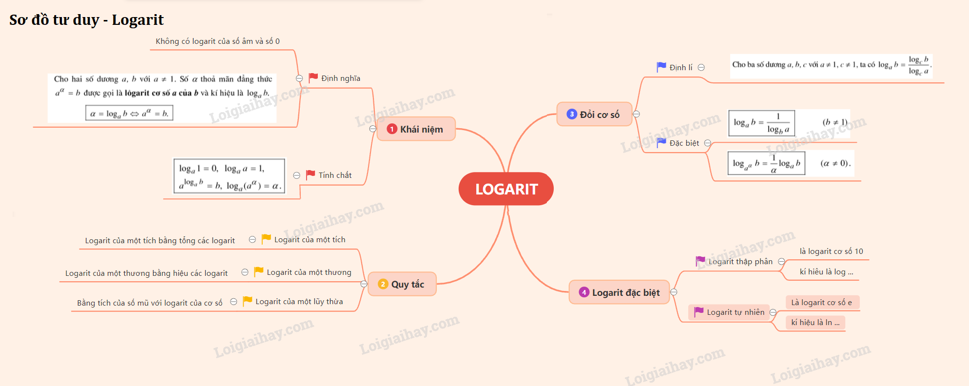 Lôgarit có các tính chất rất phong phú, có thể chia ra thành các nhóm sau đây: