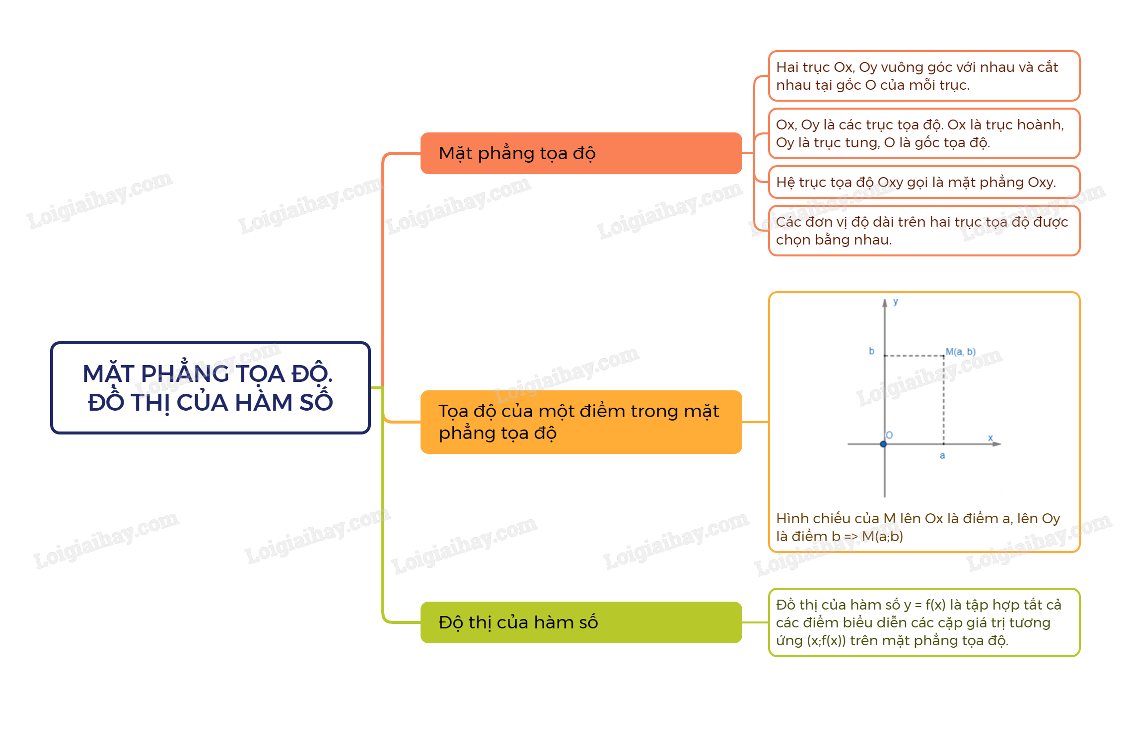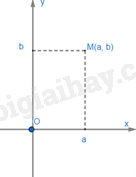 Giả sử hình chiếu của điểm M lên Ox là điểm a, lên Oy là điểm b. Cặp số (a;b) gọi là tọa độ của điểm M, a là hoành độ, b là tung độ.