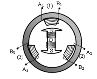 Một trong hai phần cảm và phần ứng đứng yên, phần còn lại quay, bộ phận đứng yên gọi là stato, bộ phận quay gọi là rôto.