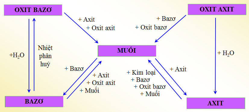 Sơ đồ chỉ mối quan hệ giữa các loại hợp chất vô cơ.