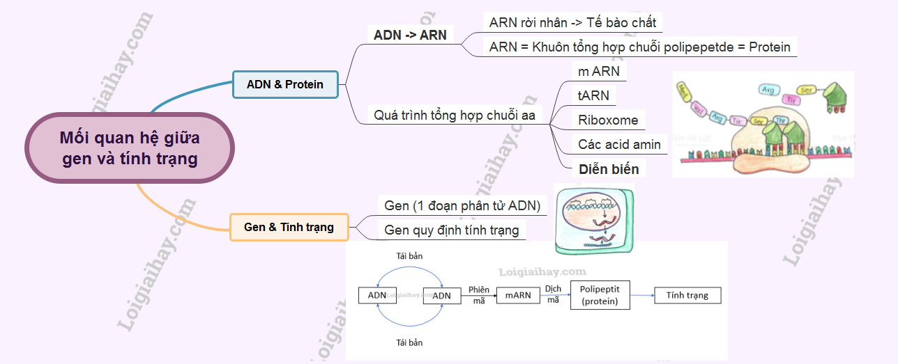 Sơ đồ tư duy mối quan hệ giữa gen và tính trạng: