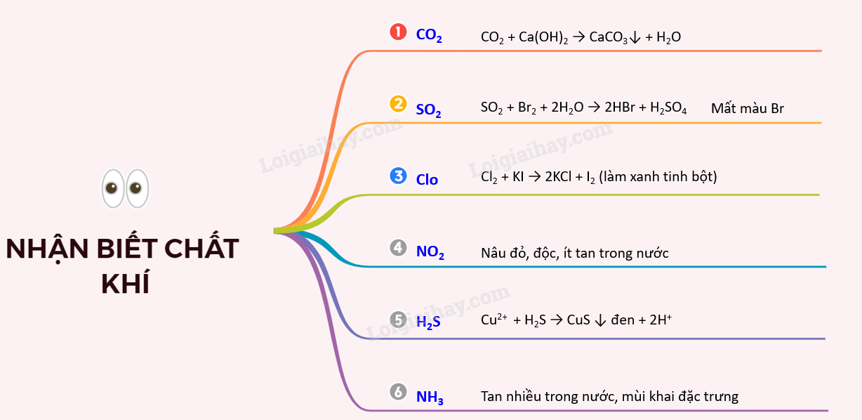 Sơ đồ tư duy: Nhận biết một số chất khí
