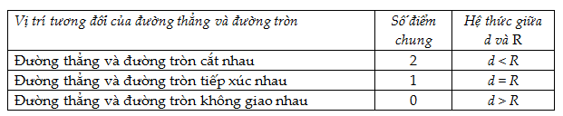 Cho đường tròn $\left( {O;R} \right)$ và đường thẳng $a.$ Đặt $d = d\left( {O,a} \right).$ Ta có: