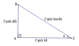 \(\sin \alpha  = \dfrac{{AB}}{{BC}};\cos \alpha  = \dfrac{{AC}}{{BC}};\tan \alpha  = \dfrac{{AB}}{{AC}};\cot \alpha  = \dfrac{{AC}}{{AB}}\)