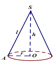 Cho hình nón có bán kính đáy $R = OA$, đường sinh $l = SA$, chiều cao $h = SO$. Khi đó :