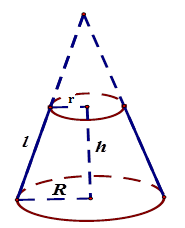 Cho hình nón cụt có các bán kính đáy là $R$ và $r,$ chiều cao $h,$ đường sinh $l.$